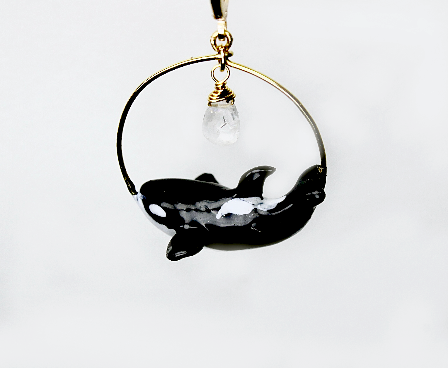 Descubre la elegancia del océano con estos aretes orca únicos, cuidadosamente moldeados a mano para capturar la esencia salvaje y serena de estas criaturas fascinantes. Cada diseño se complementa con una delicada gota de piedra luna facetada que brilla con tonos iridiscentes, creando un efecto hipnotizante con cada movimiento. Perfectos para quienes buscan joyería con alma y autenticidad, estos aretes transforman tu estilo en una declaración de conexión con la naturaleza. Lleva contigo la sabiduría y el poder del océano en cada ocasión.