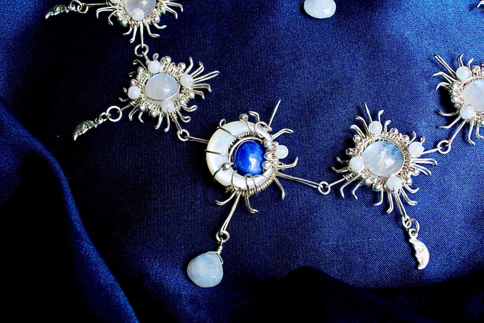 Conoce nuestro Collar Citlalli, pieza única de plata 0.925 con piedra luna, concha tallada y zafiro estrella azul. Concursante en la 87 edición del concurso de platería nacional en Taxco. Disfruta de su diseño concursante y añade elegancia a tu estilo. ¡No te quedes sin él!